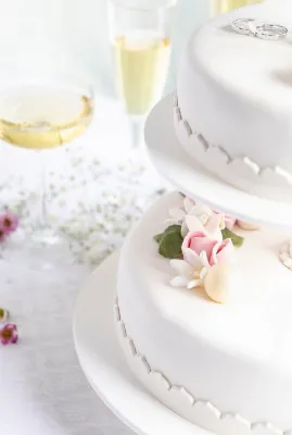 Blokk av marsipankake fylt med deilig krem og syltetøy. Våre marsipankaker er laget av de beste råvarer med ekte kremfløte, egg og marsipan med 18% mandler. Vår standard er sukkerbrødbunn. Du kan også velge mandelbunn eller makronbunn (hasselnøtter) mot et tillegg i prisen. OBS! Dersom det velges fondant, er det et lag med marsipan under fondanten. Standard farge på pynt er rød, annet ønske må spesifiseres.