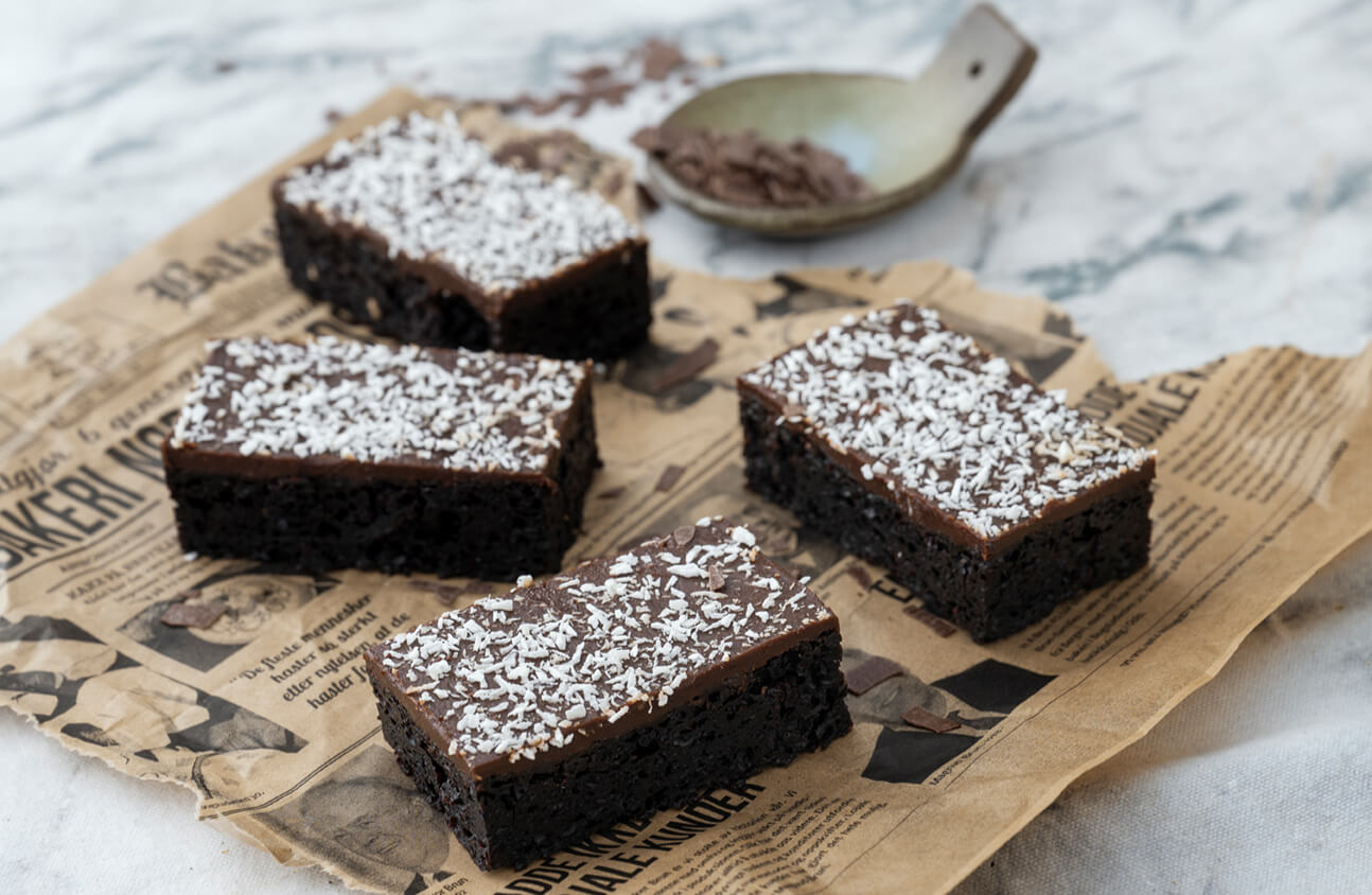 Har du allergikere i selskapet? Vår glutenfrie og veganske sjokoladekake kan (nesten) alle spise. Inneholder kun soya som allergen. Obs: Kan inneholde spor av gluten, egg, melk og nøtter.